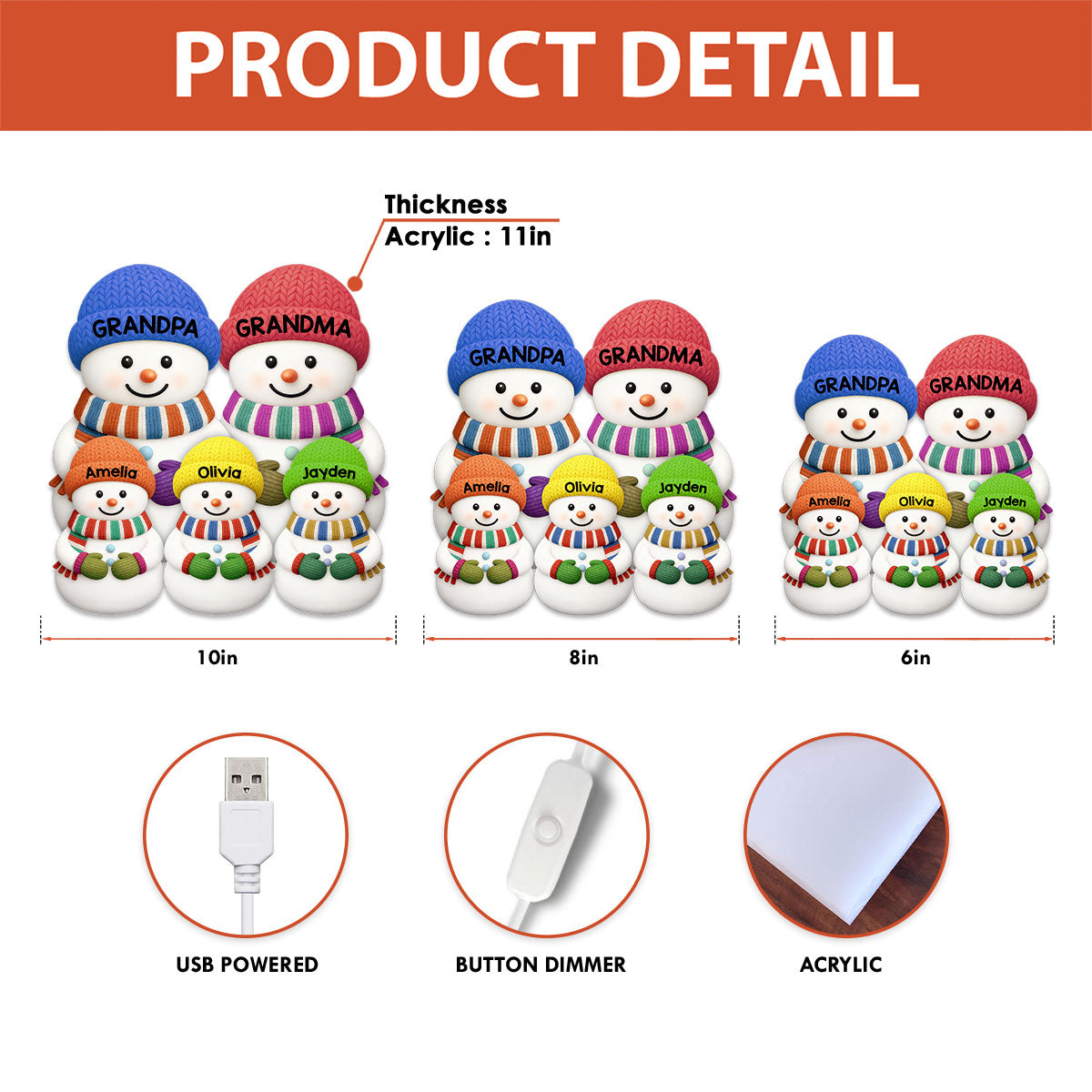3D Effect Heartwarming Christmas Grandma Grandpa Grandkids Snowman Together - Personalized Light Box - Gift For Grandmas