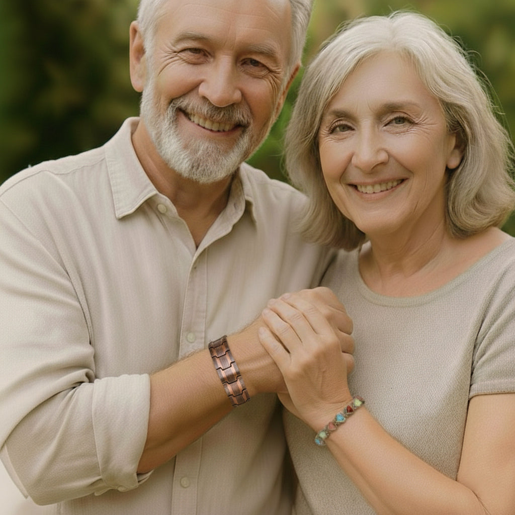 Promotes circulation, eases tension, and restores daily balance-where wellness meets timeless design.Handcrafted for lasting comfort and connection, each braceletis a daily reminder of strength, balance, and shared energy.